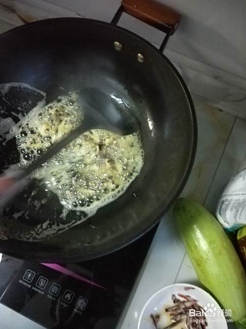 倒出花生米和油后,再次往锅里面倒油,待油热了以后,放入和自己试辣的口味相当的辣椒丝,或者可以用花椒代替,不能吃辣的话,可以不放,因为辣味也可以起到香的作用;可以放些许姜丝炒,姜也能出香味;