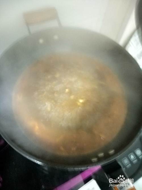 加完酱煮完差不多两分钟后,再加入另外两碗水,现在差不多有半锅的水了,然后大火烧开,多放水的原因就是让肉和酱的味道更好的融合在一起,大火烧几分钟后,再用小火来熬制;