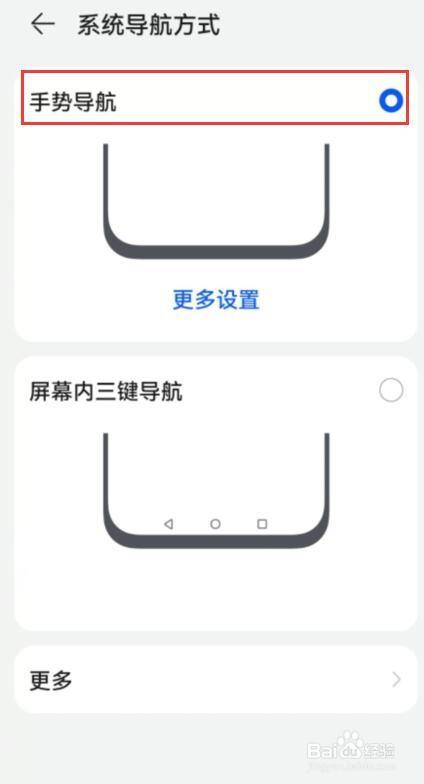 在导航方式下,勾选手势导航即可完成左右滑动返回。