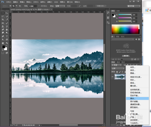 首先在PS中打开我们要更换的图片,然后在图层面板找到调整图层——黑白命令,将图片去色处理。