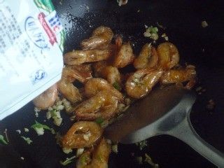 锅中放油烧热,下入挑去虾线的海虾炸至金黄色。