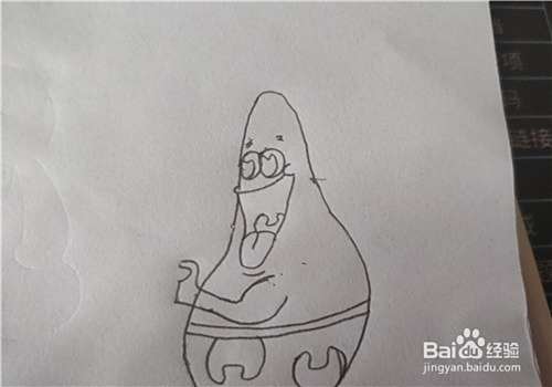 然后,我们在纸上画出派大星的五官,如图所示。