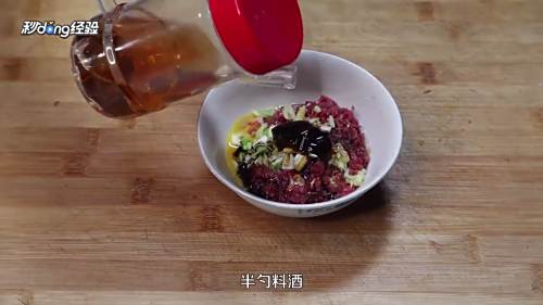 2加入一把葱花、一把姜末、一大勺植物油、一勺蚝油、一勺生抽、半勺料酒、少许胡椒粉、适量盐调味,搅拌均匀。