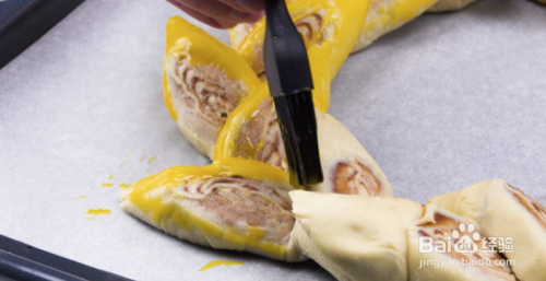在面团表面涂上蛋黄液,烤箱170°C 烤25分钟。