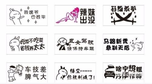 个性车贴也要有一个文字管理,像一些损人的话语不能用,车贴一定要文明用语,否则如果遇到较真的交警,必定会拦下来,让你撕掉。同时这类车贴销售也就大大降低了。所以车贴一定要文明用语