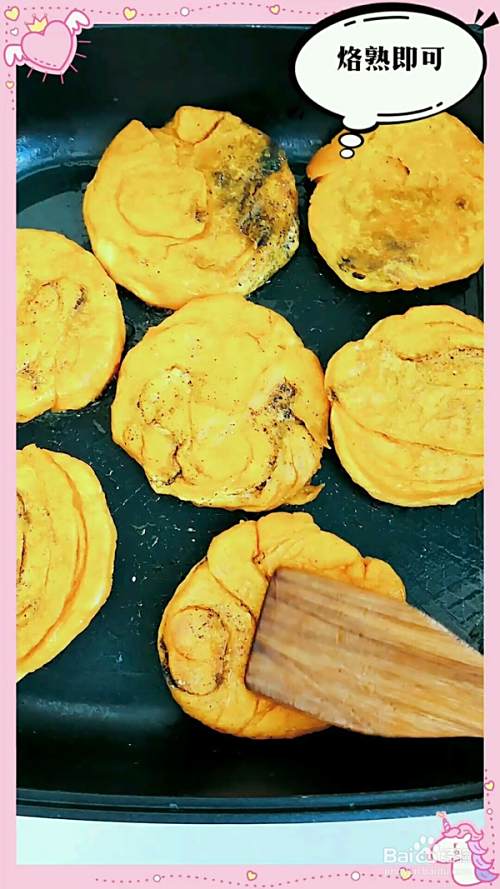 两面翻动,看到饼鼓起了两面金黄就熟了