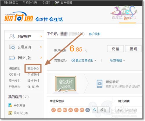 使用的QQ号和密码登录QQ财付通,在首页点击安全中心。