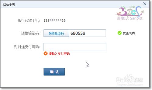 接收到手机短信验证码,填写后,还需要验证支付密码。