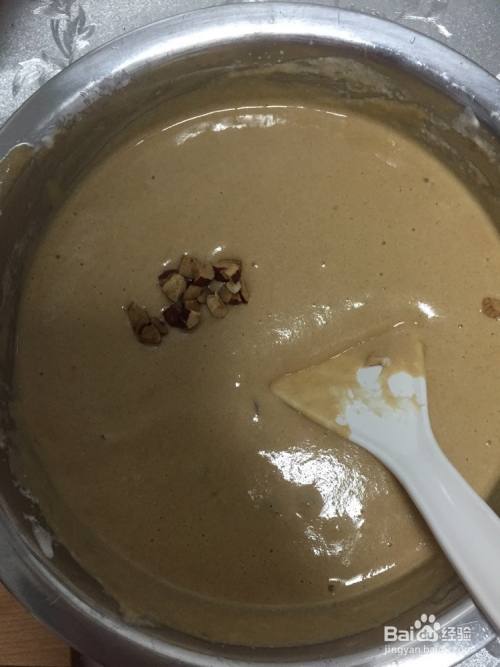 红枣丁分两份,一份加入蛋糕糊里,翻拌进去。