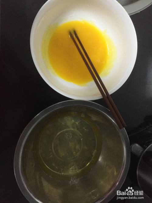 六个蛋黄蛋清分离,蛋黄打散。蛋清的盆无水无油。红枣洗净切成小丁备用。