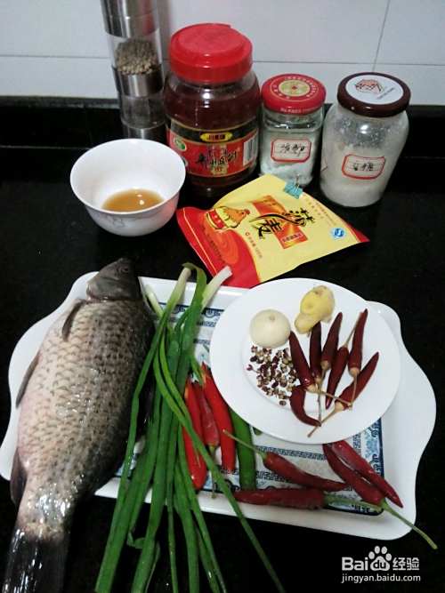 准备好鱼,姜葱蒜,辣椒花椒,料酒,盐,淀粉,胡椒粉,糖,青红线椒