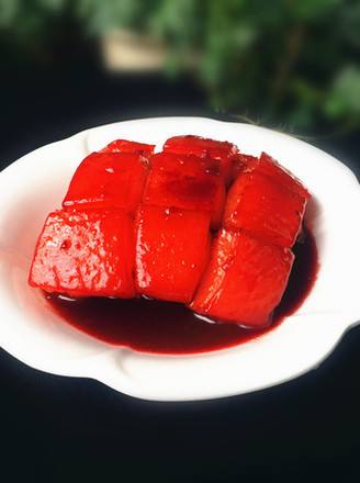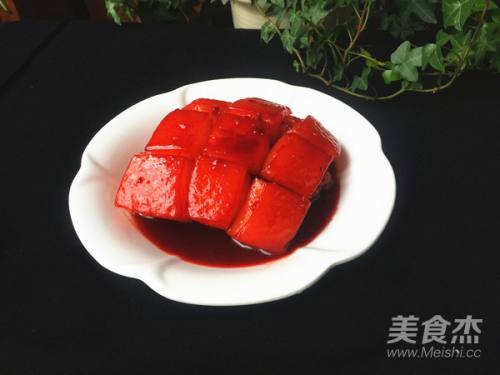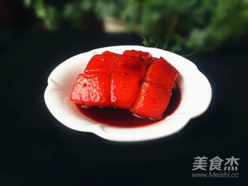8开大火,汤汁基本收干即可,再把汤汁淋在肉块上即可。