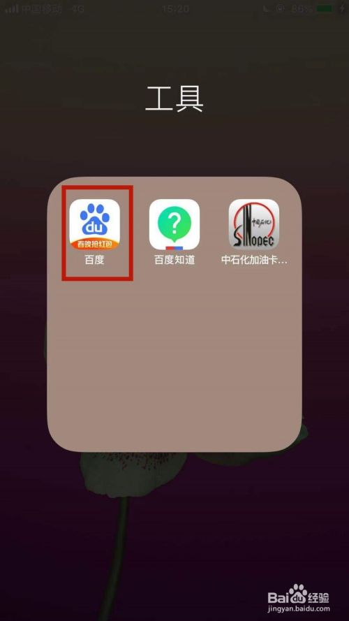 如图所示,首先在我们的手机桌面上找到百度并点击它。