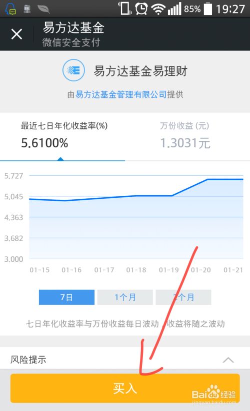 年化收益率不只可以查看7日,可以查看一个月,两个月的收益率。另注意查看“风险提示”。点击“买入”。