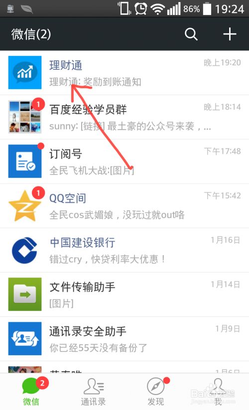 打开微信,进入主界面,微信理财通也是一个公众号,若你的公从号中没有,可以搜索理财通,添加微信理财通公众号即可。