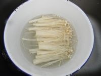 金针菇去跟,用淡盐水浸泡10分钟,洗干净。
