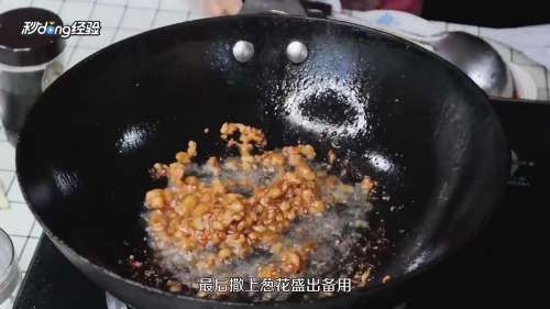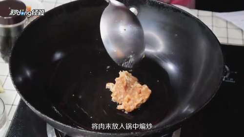 3起锅烧油,将肉末放入锅中煸炒。