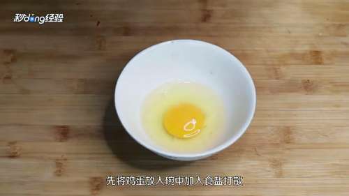 1将鸡蛋放入碗中加入食盐打散。