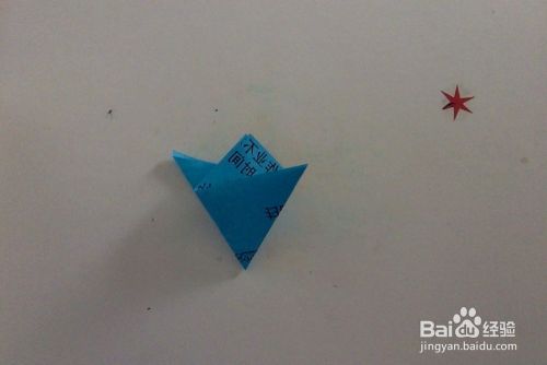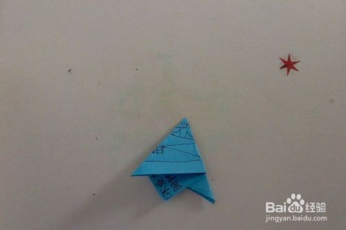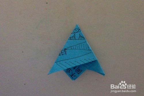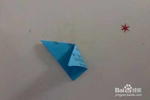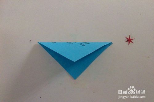 如图所示,沿材料的长边对折出中间点。以中间点为轴,向上折一部分。
