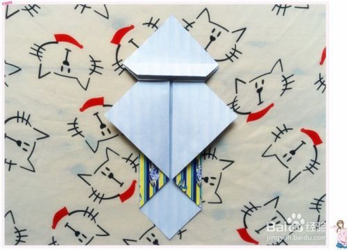 对折好之后向上压折,如图所示,这一步很关键哦。