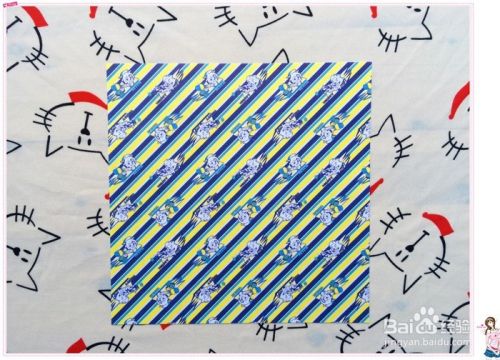 准备一张两面不相同的正方形花色纸,主要是为了折出来突出小小狗狗的某些部位。
