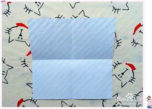 正方形的花纸白色那面朝内,上下左右沿着正方形的两条中线进行对折。