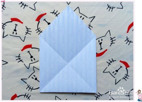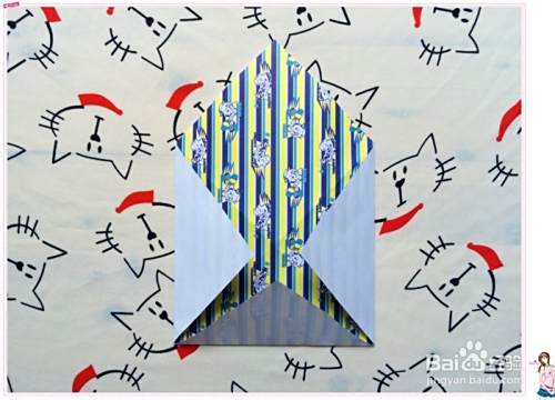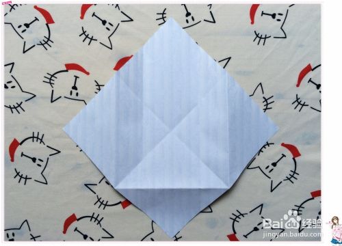 然后把正方形的三个角分别往花色那面中心处折,而这一面呈现的是这样的。