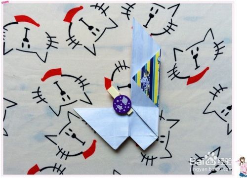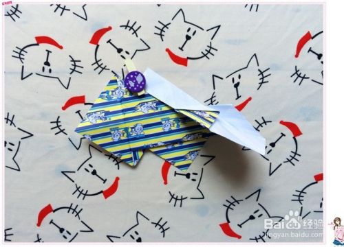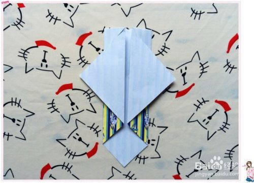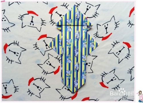 再翻到花色的那面,把小三角形往上翻折,现在呈现的好像是个宝剑的样子。