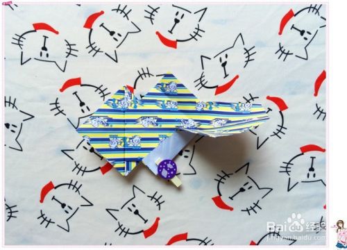 再把塞折的部分的小尖尖按照图中的样子往上拉折,这样小狗的鼻子就快折好了。