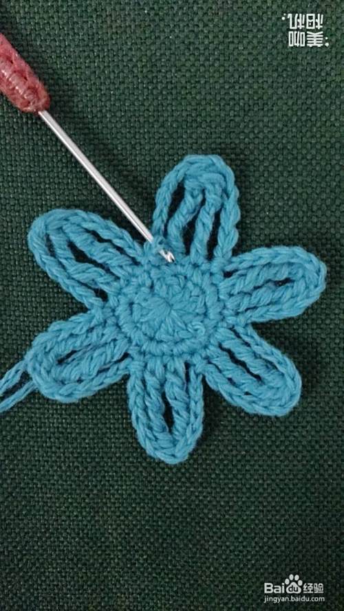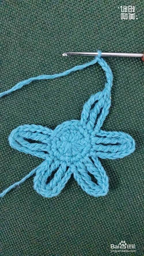 继续上一步操作,钩出其他小花瓣,这样一朵漂亮的六瓣花花样就编织完成了。