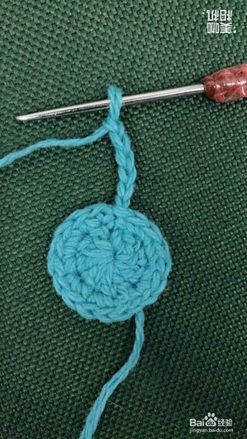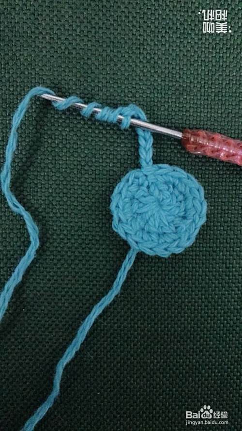 在每个针孔里面锁针2针,共计18针,完成一圈。