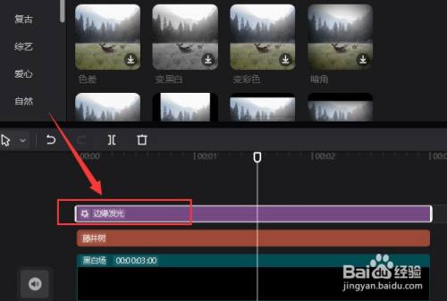 第三步,在特效菜单中找到并添加边缘发光特效,点击保存设置即可;