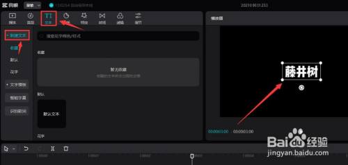第二步,随后点击文本菜单中的新建文本按钮输入文字;
