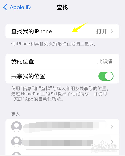 4点击查找我的iPhone选项,如下图所示