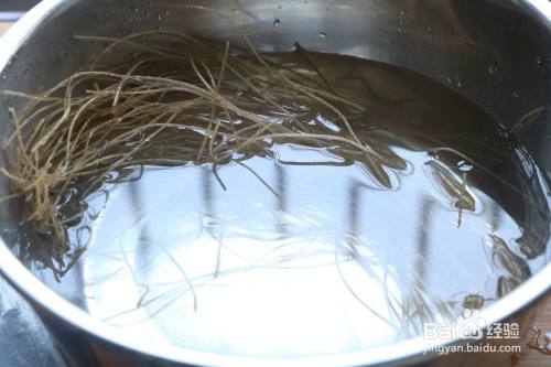 7、粉丝提前泡一泡,不需要泡软,主要清洗表面的灰尘;