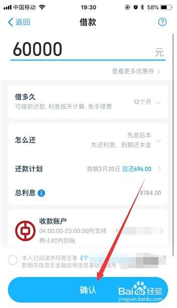 没问题之后,点击“确认借钱”就可以借到钱了,如图所示。