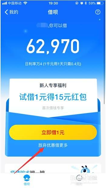 进入借呗之后,选择“放弃优惠借更多”,如图所示。