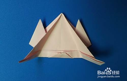 把底部的三角形向上方折叠,这是小螃蟹的头,如下图所示。