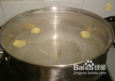 往锅里加入清水,让后放入姜片,直至水烧开沸腾;