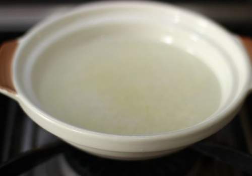 7将砂锅放到火上烧热,然后加入植物油均匀刷匀,接着再烧到微微冒烟,关火再刷一遍植物油,再开火烧到微微冒烟,这样做的目的是不易糊也不易粘锅。然后将泡好的大米和水一起倒入砂锅里。