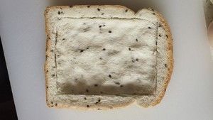 准备一片吐司,留边0.5-1cm切缝(不要完全切断)。