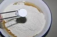 放入小苏打,用刮刀或者铲子翻拌,不要搅拌,大概混合一下。
