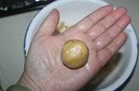 然后将小球都轻轻压扁成饼,让饼的四周有自然的开裂。