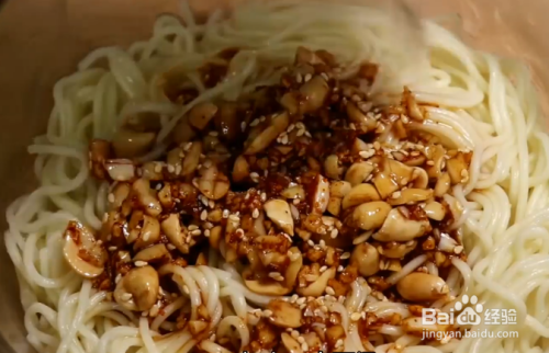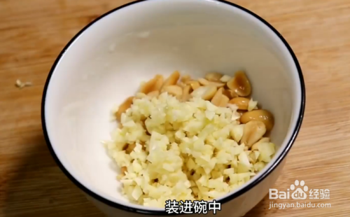 准备好的蒜末花生中加入食盐,生抽,白芝麻,辣椒粉。泼上热油,搅拌均匀。