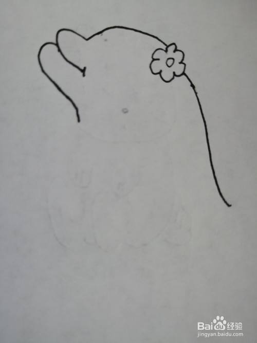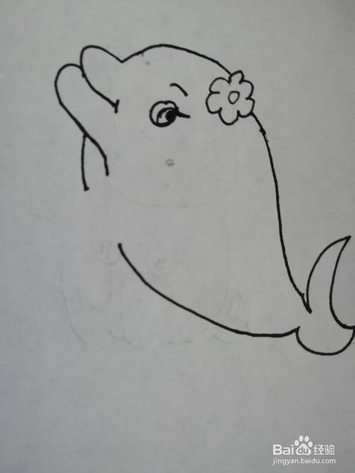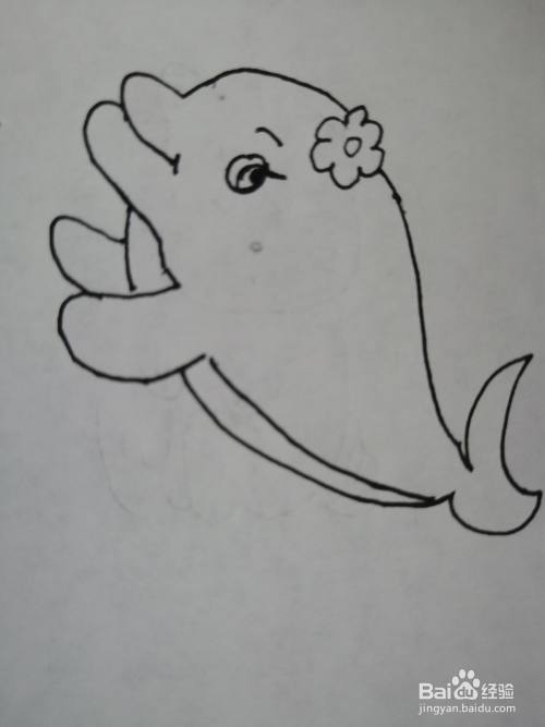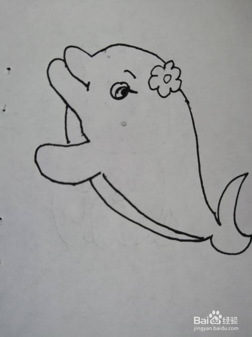 第二步,接着在小海豚的小花旁边把小海豚的头部轮廓也画出来。