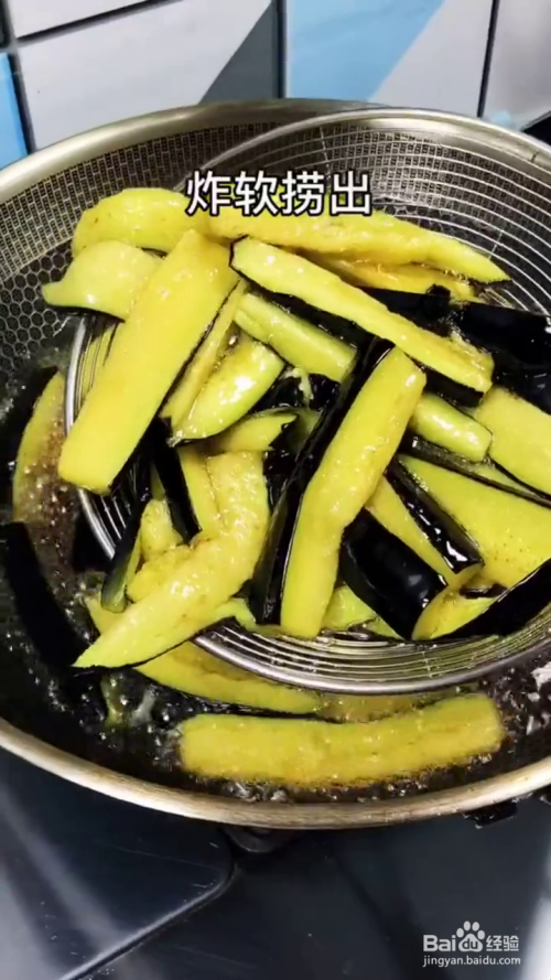 我们将食材洗净,茄子切条,洋葱切丁,锅中烧油,油温五到六成热,下入茄子,中小火炸软捞出控油备用