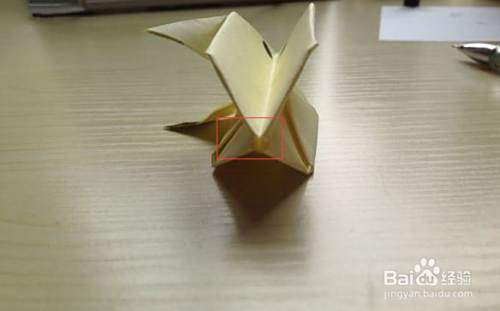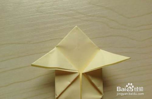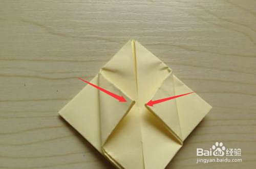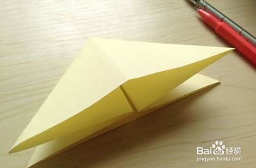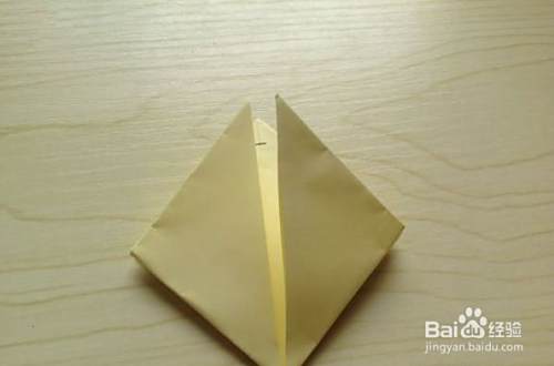 第五步:折叠好以后,我们把图案压下去成为两个三角形。