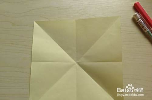 第二步:横竖斜全部折一遍再打开,每个褶皱的纹路要清晰。这样方便以后的折叠。