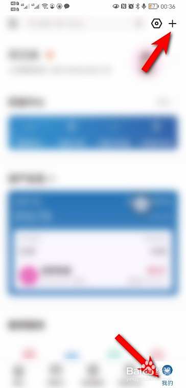 进入建设银行手机APP,点击我的,再点击右上+号。