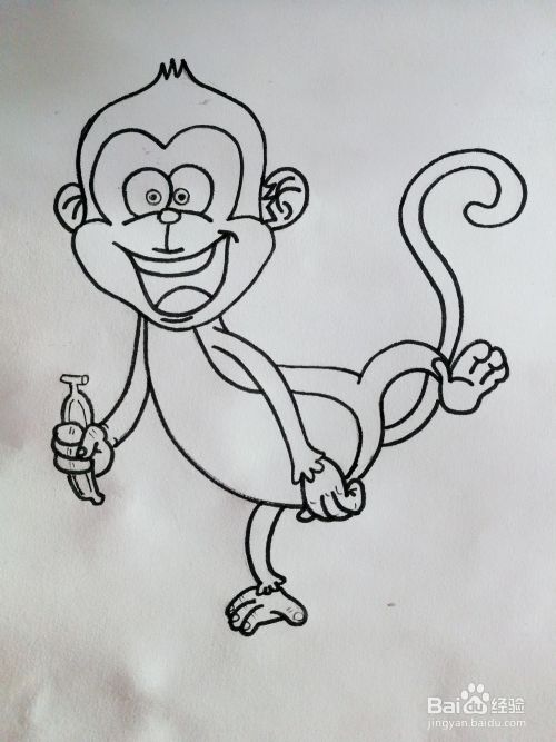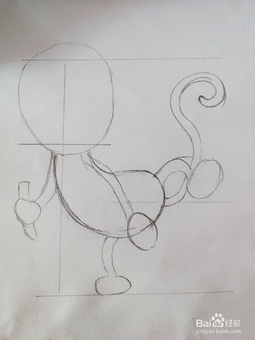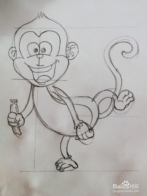 3、慢慢地修改画出猴子的五官跟身体线段。